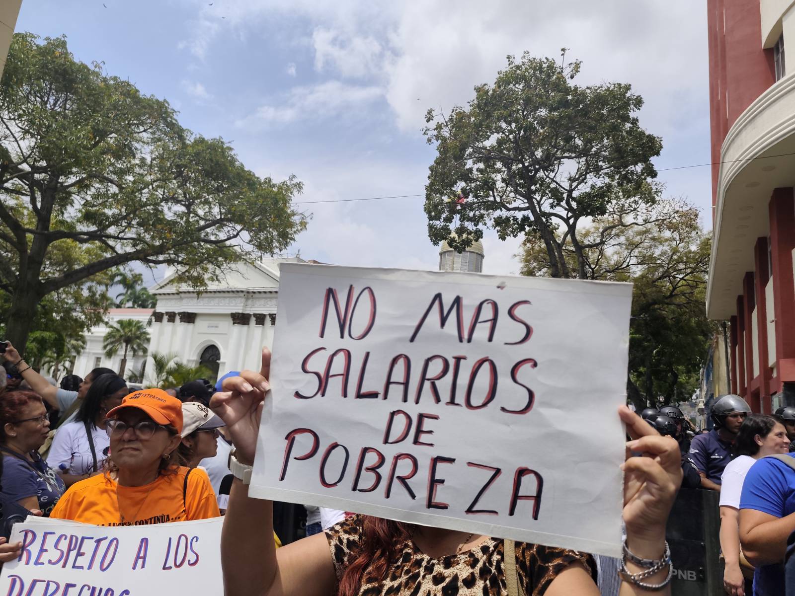 Sociedad civil y sindicatos llegaron hasta la Plaza Bolívar de Caracas para exigir mejoras salariales en Venezuela 12 de marzo de 2026