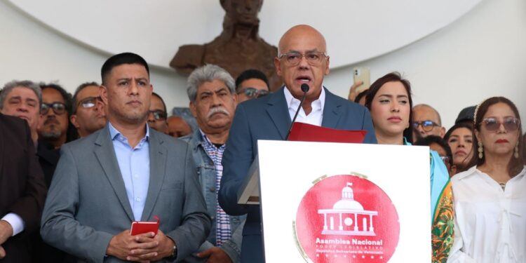 En un comunicado leído por el presidente del Parlamento, Jorge Rodríguez, la AN denunció los «nuevos intentos del imperialismo de repetir viejas fórmulas para desestabilizar la paz de toda la patria».