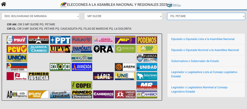El Consejo Nacional Electoral habilitó un nuevo enlace externo a su página web, fuera de línea tras las elecciones presidenciales de julio de 2024 por un presunto hackeo, para divulgar los candidatos a gobernadores, diputados a la Asamblea Nacional y legisladores regionales que compiten en los comicios pautados para el 25 de mayo.
