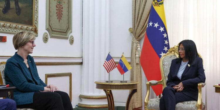 Alberto News – Caracas, 2 de Febrero del 2026. La presidenta encargada de Venezuela, Delcy Rodríguez, se reunió este lunes con la nueva encargada de negocios de Estados Unidos Laura Dogu, quien llegó al país suramericano el sábado para reabrir la misión diplomática, cerrada desde hace siete años tras la ruptura de relaciones entre ambas naciones.