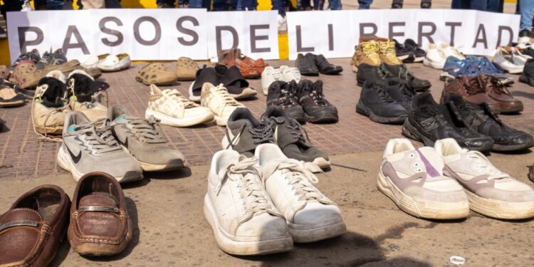 Familiares simbolizan con zapatos los pasos que dejan de dar presos políticos en Venezuela