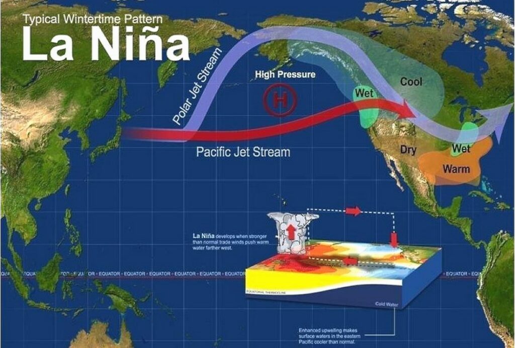 “La Niña”, de acuerdo con la información meteorológica, causa anomalías en los promedios históricos del clima, ya que tienden a bajar las temperaturas y aumentar las lluvias. El impacto de las precipitaciones puede ser intenso, provocando inundaciones y desbordamientos en zonas específicas.