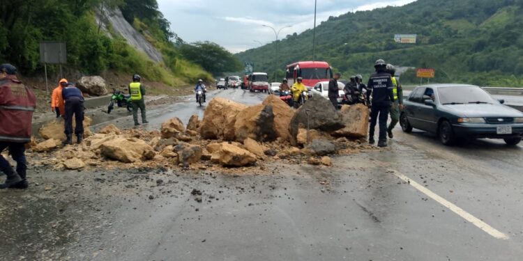 Las fuertes lluvias registradas en la madrugada de este miércoles generaron un deslizamiento en la autopista Caracas- Guarenas.