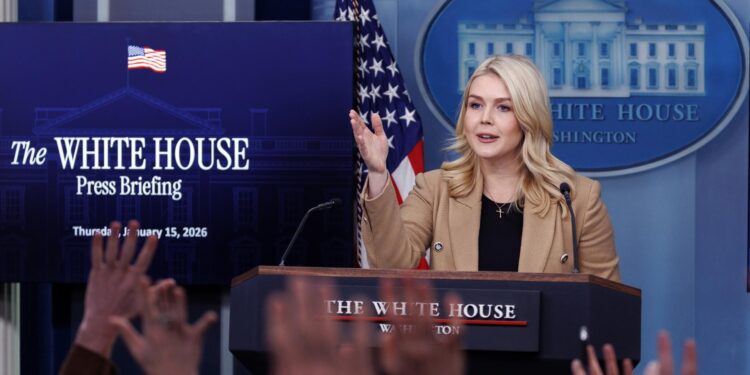 Alberto News – Caracas, 15 de Enero del 2026. La secretaria de prensa de la Casa Blanca, Karoline Leavitt, elogió durante su rueda de prensa a la líder opositora y Nobel de la Paz, María Corina Machado, mientras ocurre su encuentro con el presidente Trump en la Casa Blanca.