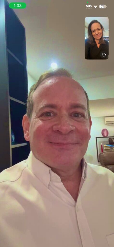 En ese contexto, la también Premio Nobel de la Paz 2025, María Corina Machado compartió una fotografía en sus redes sociales con Juan Pablo Guanipa en una videollamada.