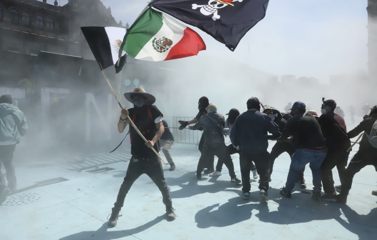«Durante muchas horas, esta movilización transcurrió y se desarrolló de manera pacífica, hasta que un grupo de encapuchados comenzó a realizar actos violentos», afirmó en rueda de prensa el secretario de Seguridad de Ciudad de México, Pablo Vázquez.