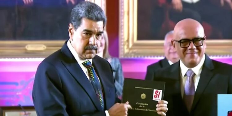 «Juro por el histórico, noble y aguerrido pueblo de Venezuela y ante esta Constitución, que haré cumplir todos su mandatos, inauguro el nuevo periodo de la paz, la prosperidad y la nueva democracia», dijo el mandatario ante el presidente del Parlamento, el chavista Jorge Rodríguez.