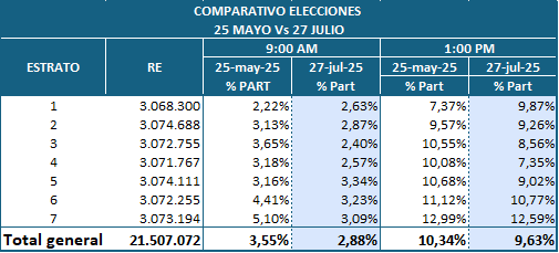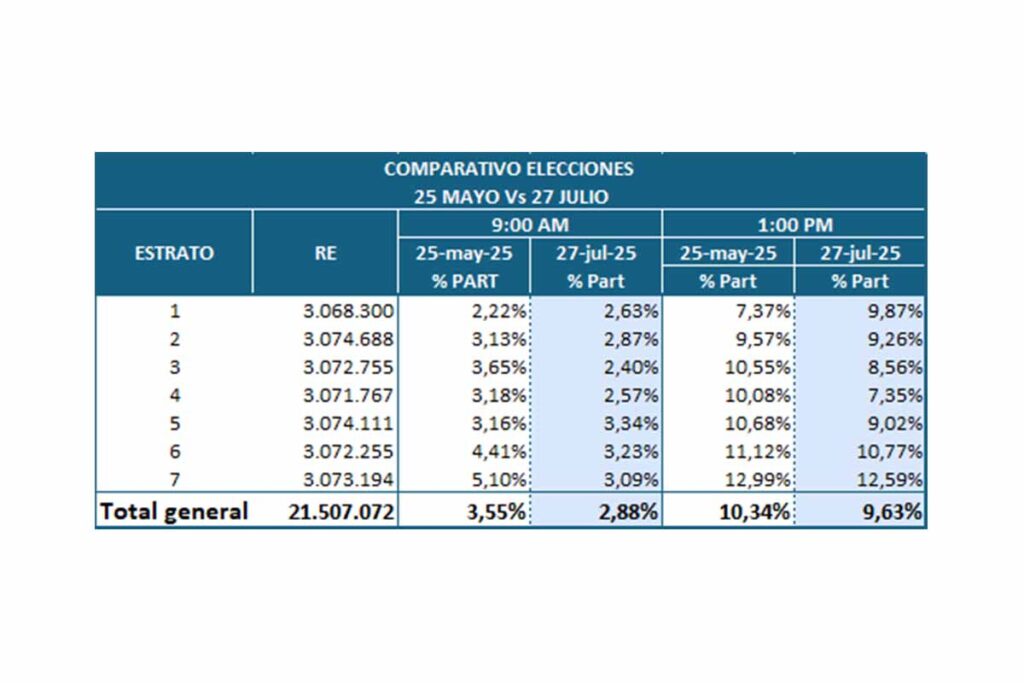 Un estudio independiente confirma lo que informes extraoficiales venían reportando: la participación en las elecciones de este domingo 27 de julio es incluso menor que la registrada durante las elecciones regionales del pasado mes de mayo.