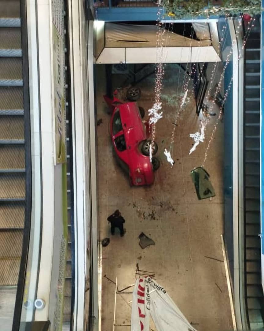 Monitoreamos – Caracas, 19 de Enero del 2024. Un vehículo Chevrolet, modelo Aveo, cayó este jueves en horas de la tarde al sótano del Centro Comercial Parque Aragua, quedando heridos el conductor y su hijo.
