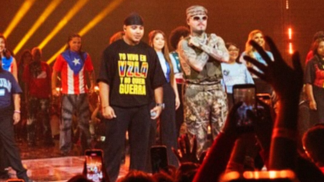 El artista cantó junto al puertorriqueño Farruko luciendo una camisa que llevaba estampada la frase: “Yo vivo en Venezuela y no quiero guerra”.