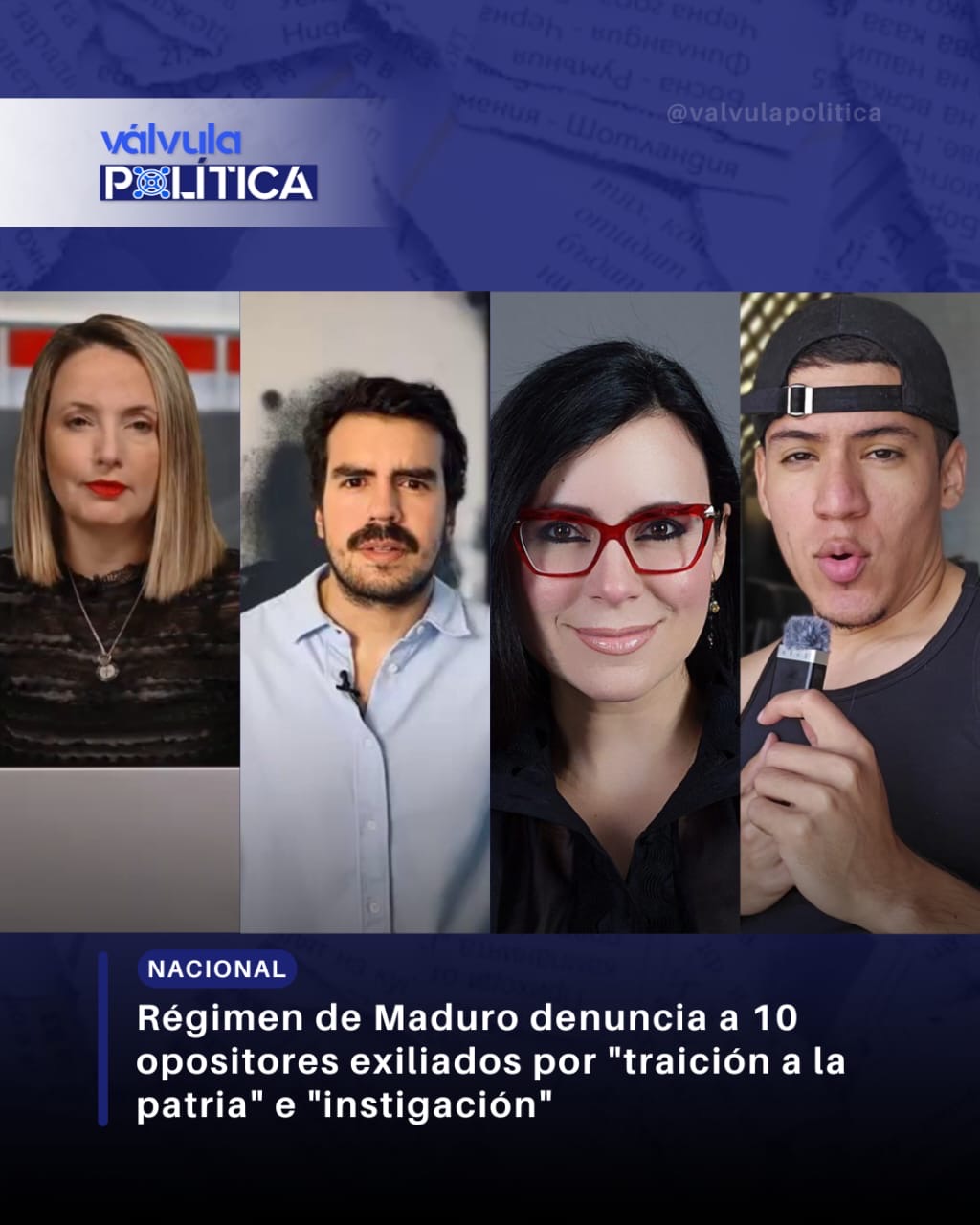El Ministerio Público del régimen de Maduro recibió una denuncia contra diez venezolanos, en su mayoría residentes en el exterior, acusados de la presunta comisión de los delitos de «traición a la patria», «atentado contra la seguridad de la nación», «instigación pública» y «apología del delito».
