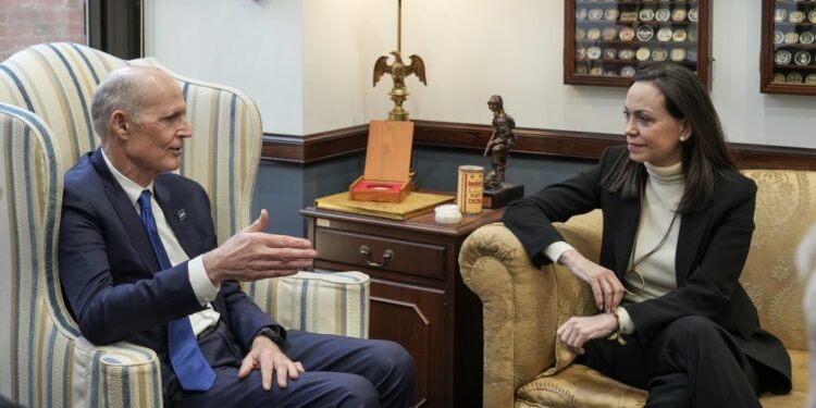 Alberto News – Caracas, 19 de Marzo del 2026. El senador estadounidense Rick Scott reafirmó su respaldo a la oposición venezolana tras sostener un encuentro con la líder política María Corina Machado, en medio de la creciente presión internacional por una transición democrática en el país.