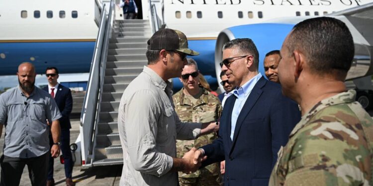 El secretario de Guerra de Estados Unidos, Pete Hegseth y el jefe del Estado Mayor Conjunto de las Fuerzas Armadas, Dan Caine, llegaron la mañana de este lunes a Puerto Rico, tras el despliegue naval norteamericano en el Caribe para combatir el narcotráfico.