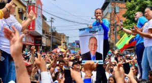 Monitoreamos – Caracas, 2 de mayo del 2024. La líder opositora María Corina Machado encabezó este jueves una multitudinaria concentración que desbordó la avenida Bella
