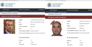 El Servicio de Inmigración y Control de Aduanas de Estados Unidos (ICE) muestra como “capturados” a los venezolanos Tareck El Aissami y Samark López Bello,