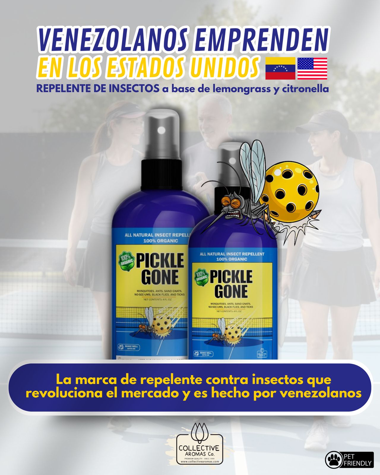 Miami, EE. UU., noviembre de 2025 — Un grupo de emprendedores venezolanos radicados en Estados Unidos presenta Pickle Gone, un innovador repelente para insectos elaborado a base de lemongrass y citronella, que ya se encuentra disponible en Amazon. Este producto ha sido especialmente diseñado para quienes practican deportes al aire libre, en especial el Pickleball, una disciplina que crece aceleradamente en EE. UU. y el mundo.
