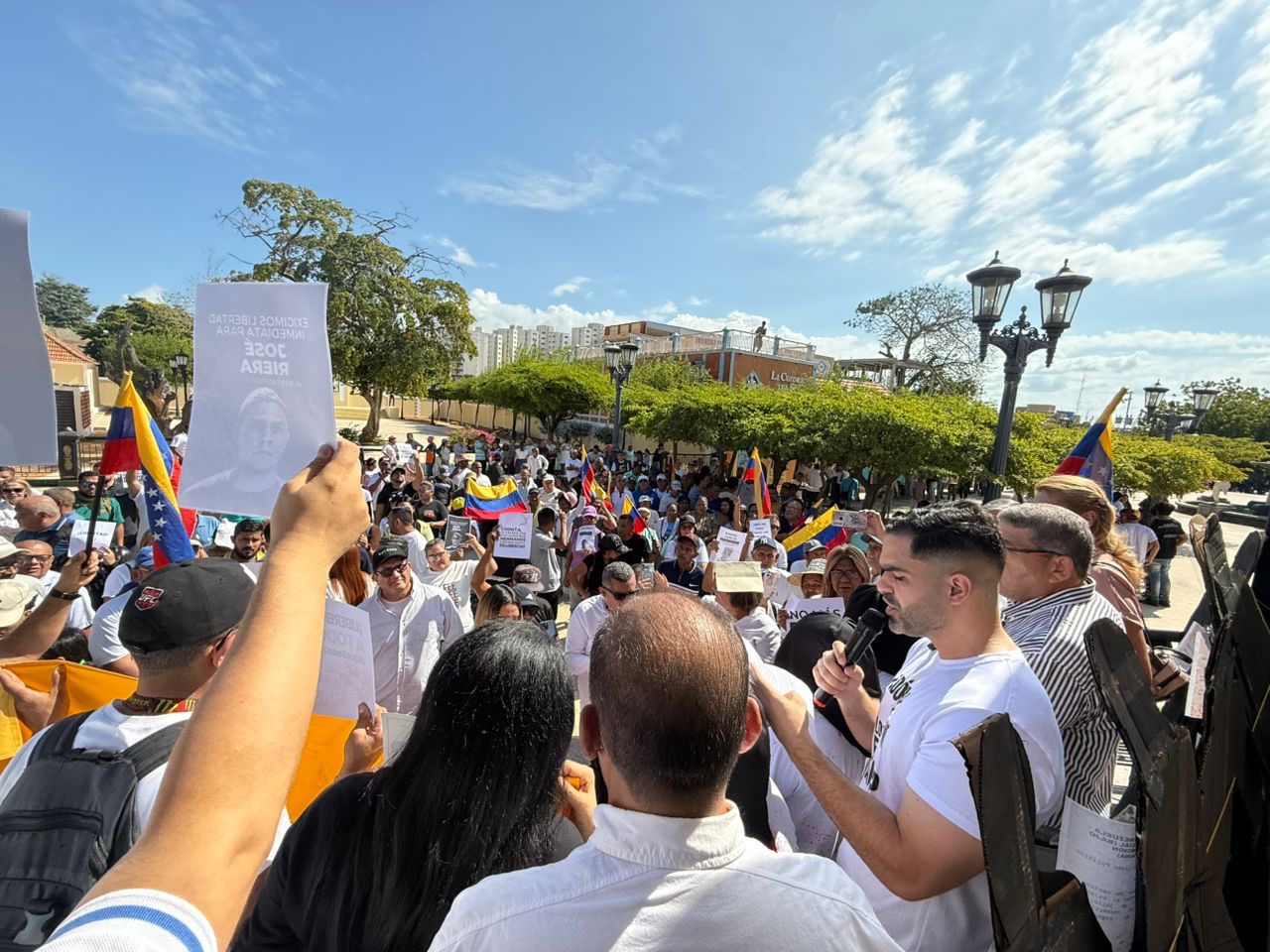 Monitoreamos – Caracas, 23 de Enero del 2026. Habitantes de Maracaibo, en el estado Zulia, salieron este viernes 23 de enero a las calles para exigir la liberación de todos los presos políticos, en el marco de la conmemoración del 68 aniversario de la caída de la dictadura de Marcos Pérez Jiménez.